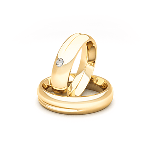 Par Argollas Matrimonio de Oro Amarillo 18kt Gio 4,0mm Diamante 3x2Pts